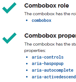 That's where these datasheets provide their value. They turn a goal of building an accessible component into a concrete development plan you can implement with confidence. The HTML structure, the required ARIA roles and states, the keyboard behaviour, and a checklist of what must update as users interact. It’s not more theory. It's the missing "spec you actually use" while you're coding.